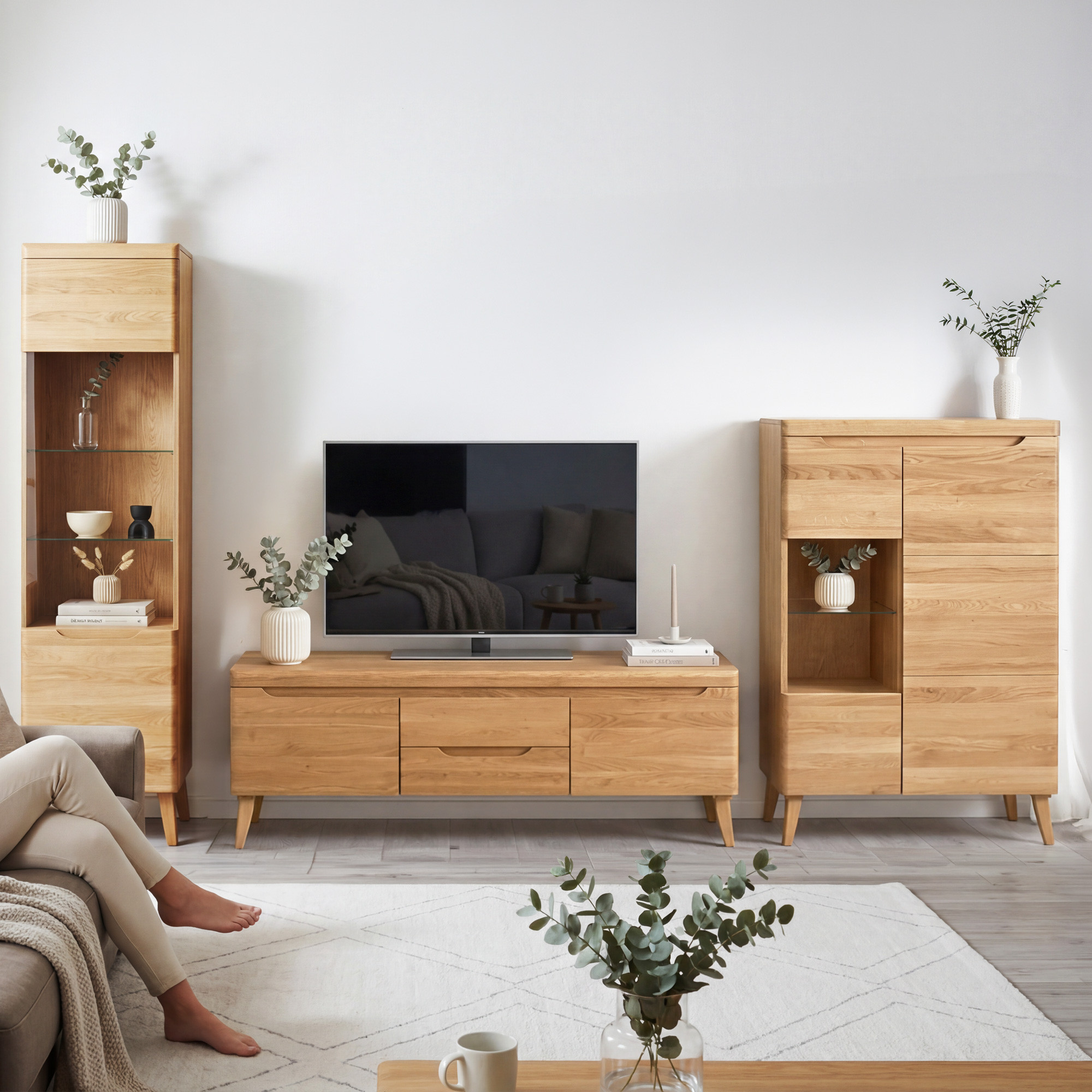 Igen, a Praha magas vitrin ugyanazon nevű tölgybútor kollekció része, skandináv stílusban. Könnyen kombinálható TV-asztallal, komódokkal vagy további vitrinekekkel a Praha kollekcióból.