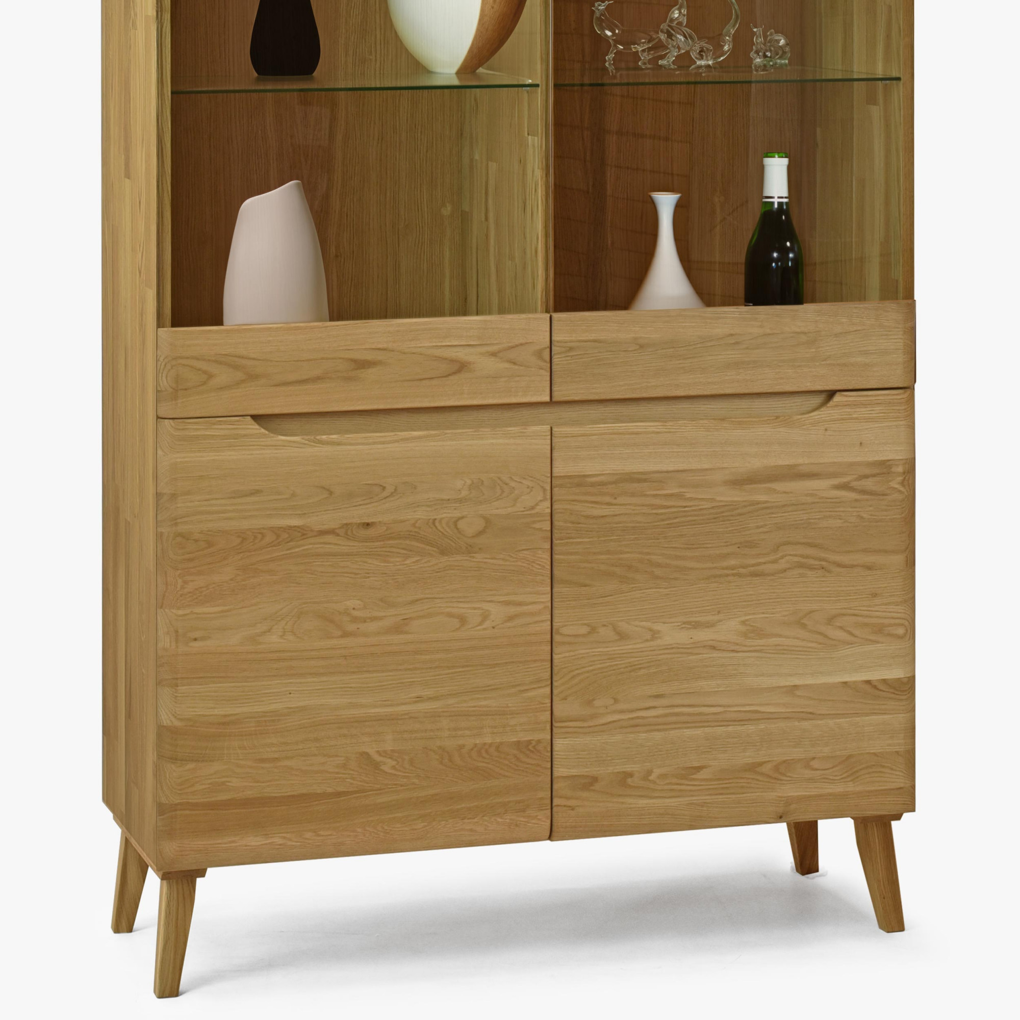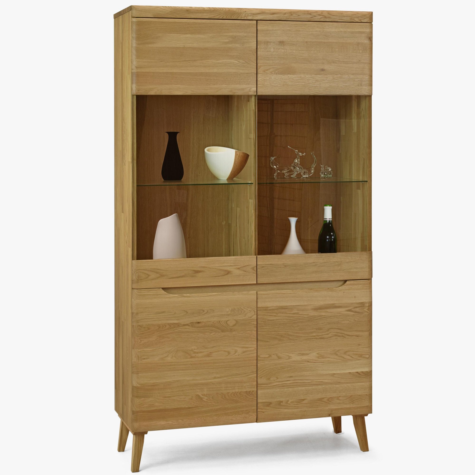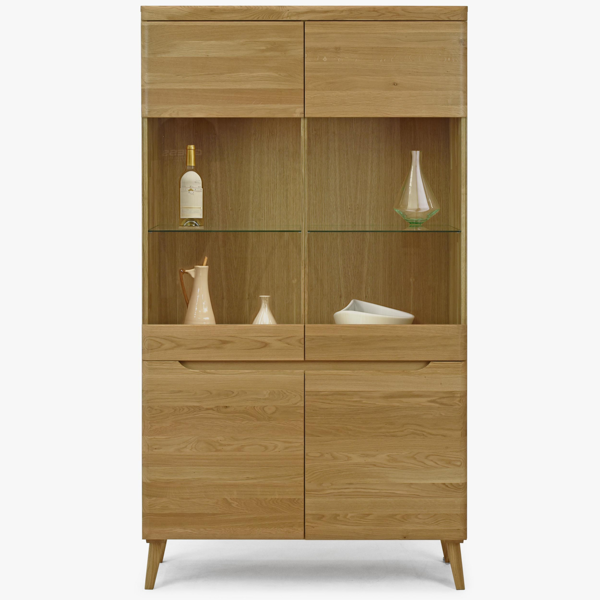 Tömör tölgyfa kétszárnyú vitrin természetes tölgy színben, 107x197 cm