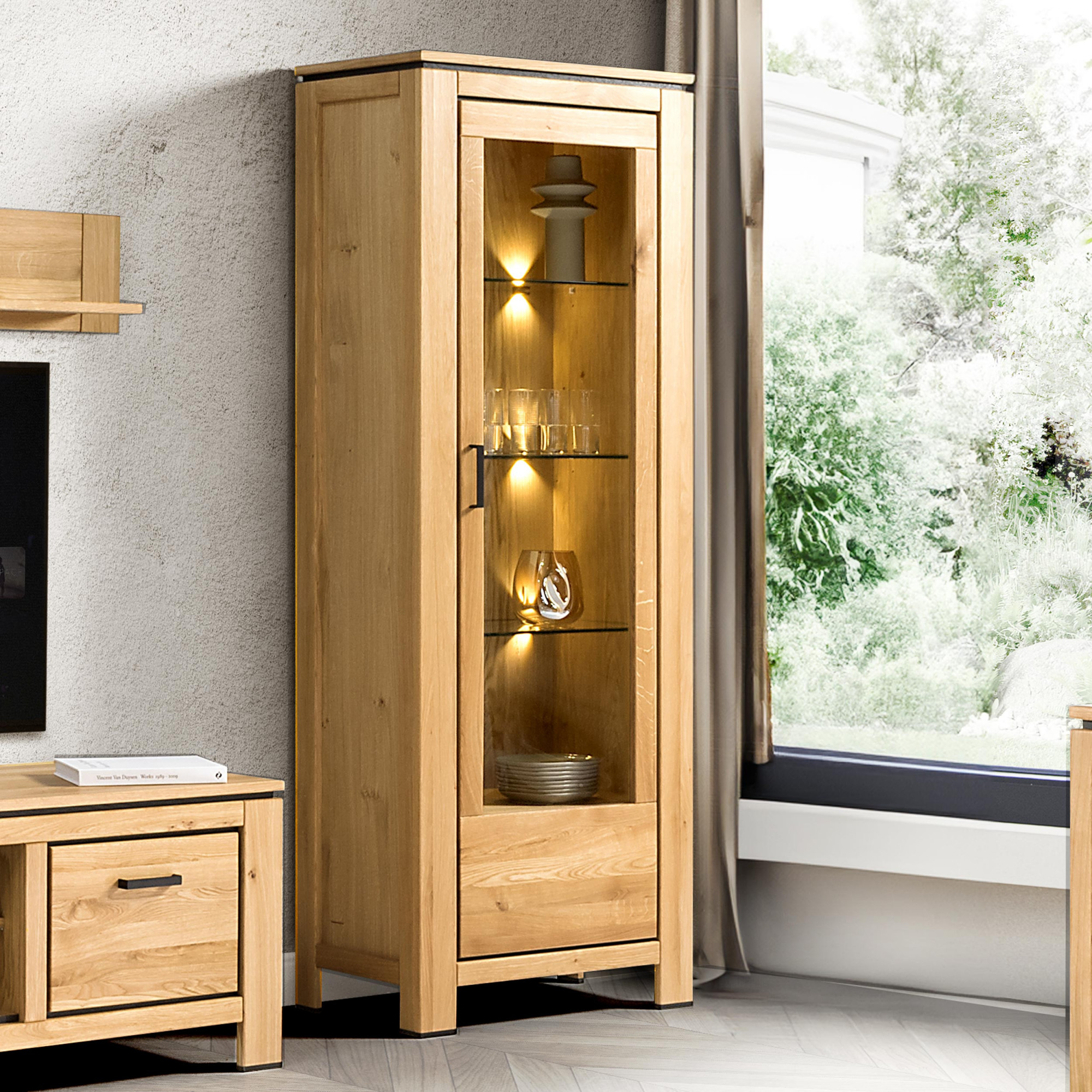 Tölgy egyajtós vitrin - jobb ajtós üveggel, típus NEW LINE II 11