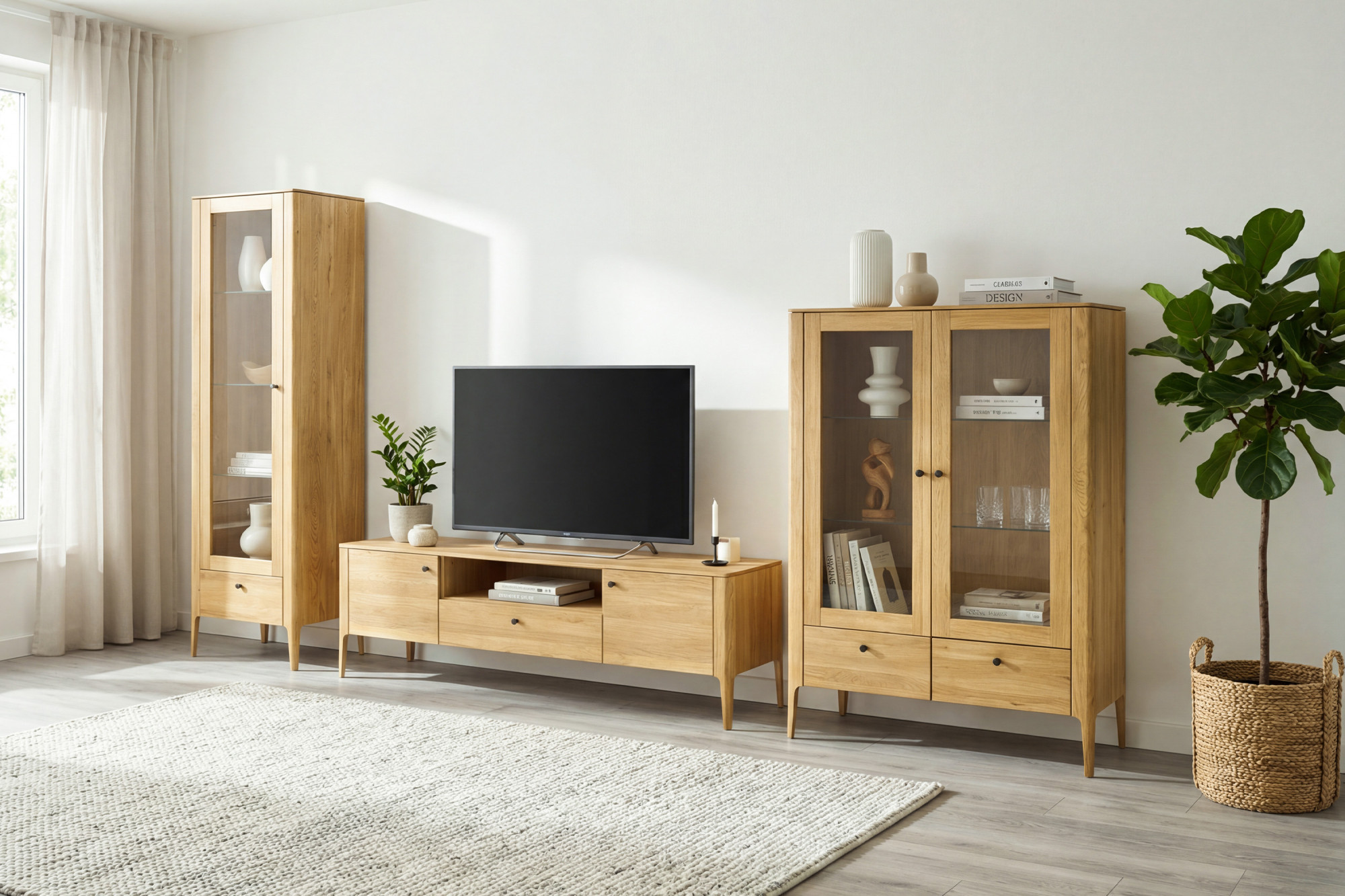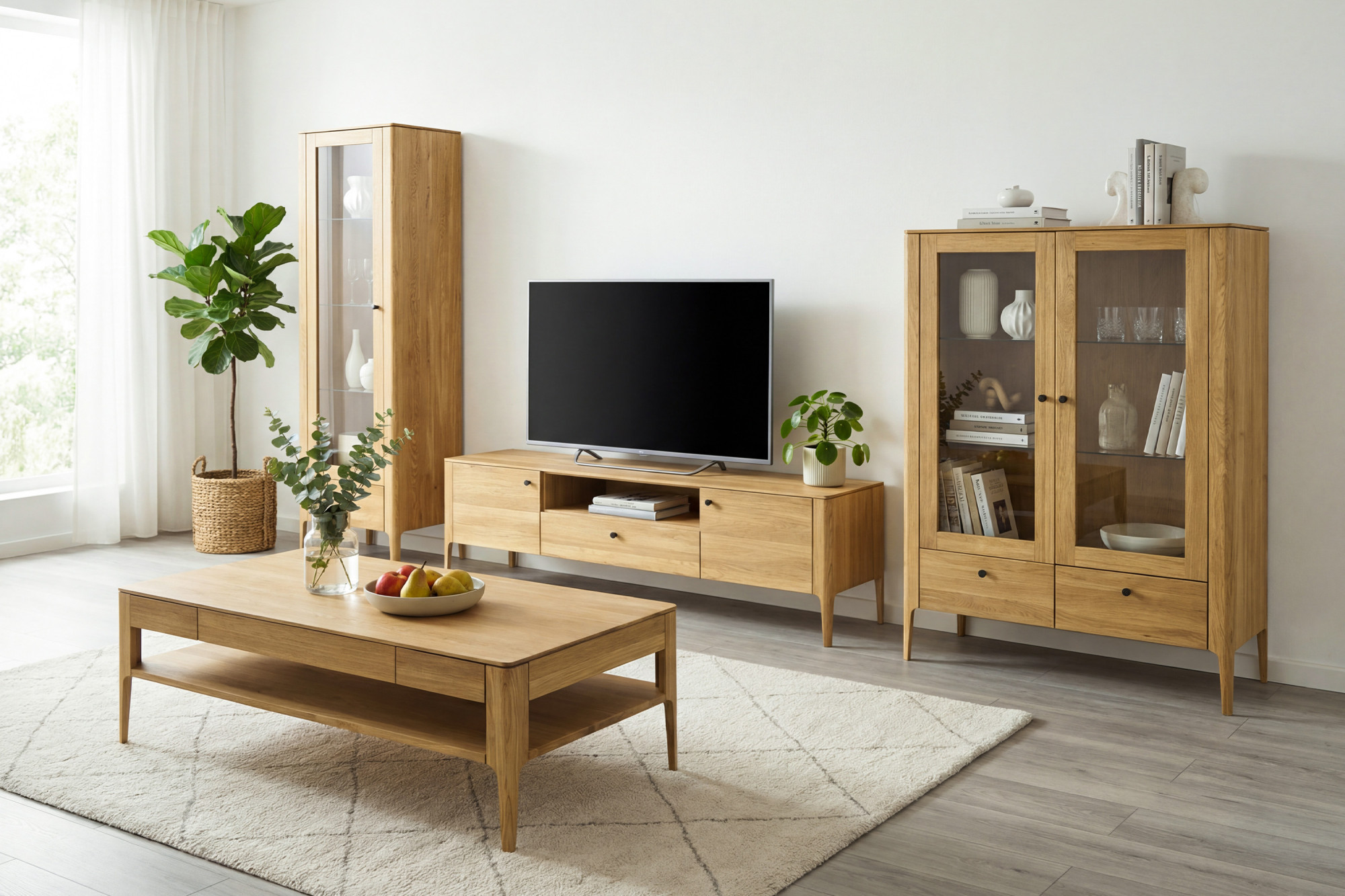 A vitrin felülete olasz Borma Wachs olajjal van kezelve dub natural színben, ami kiemeli a fa természetes erezetét és védelmet nyújt a külső hatásokkal szemben. A vitrin gyártásához használt tölgyfa FSC tanúsítvánnyal rendelkezik, ami azt jelenti, hogy felelősen kezelt erdőkből származik, és hozzájárul a környezet védelméhez. A vitrin összeszerelve érkezik, így időt és munkát takaríthat meg a szerelés során. A Košice kollekció nappali- és étkezőbútort is tartalmaz, így könnyen egységes stílusra hangolhatja enteriőrjét.
