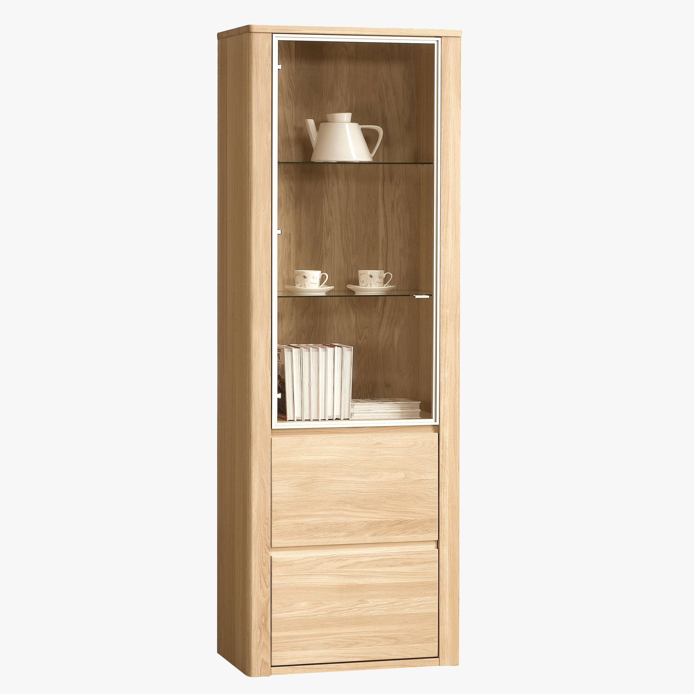 Egyajtós tömör tölgyfa vitrin minimalista dizájnnal, natúr színben