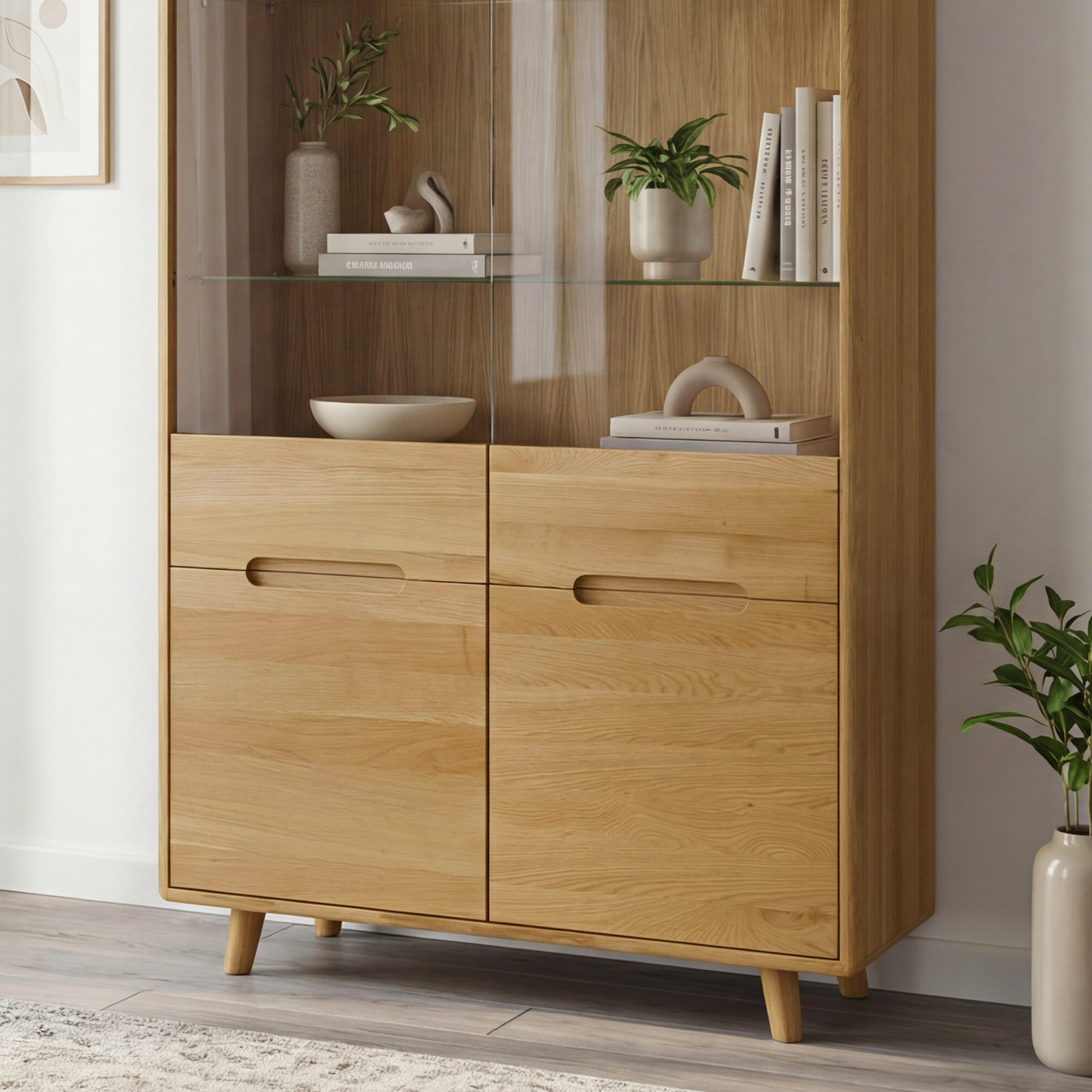 Kétajtós tölgy vitrin üveggel Bratislava skandináv dizájnban