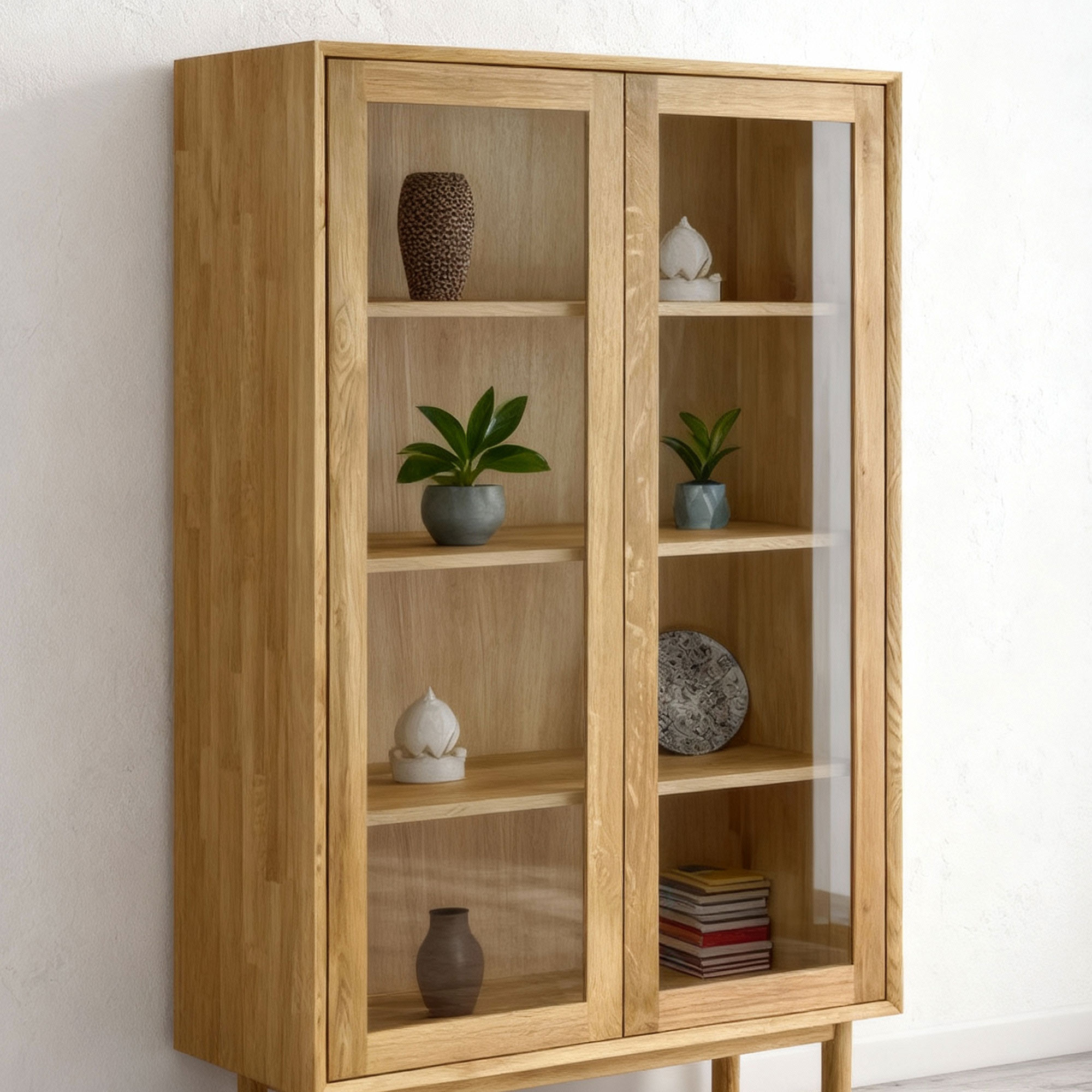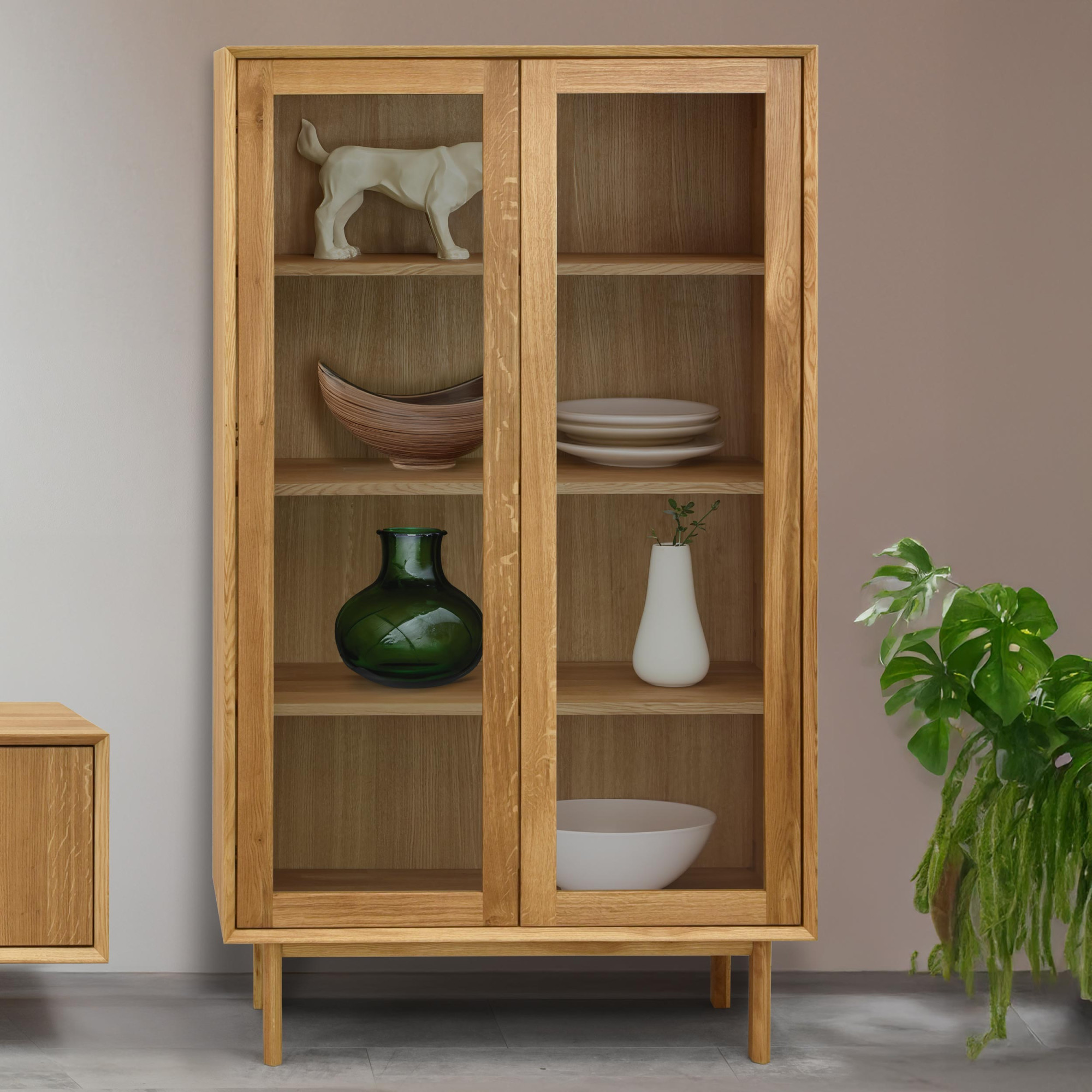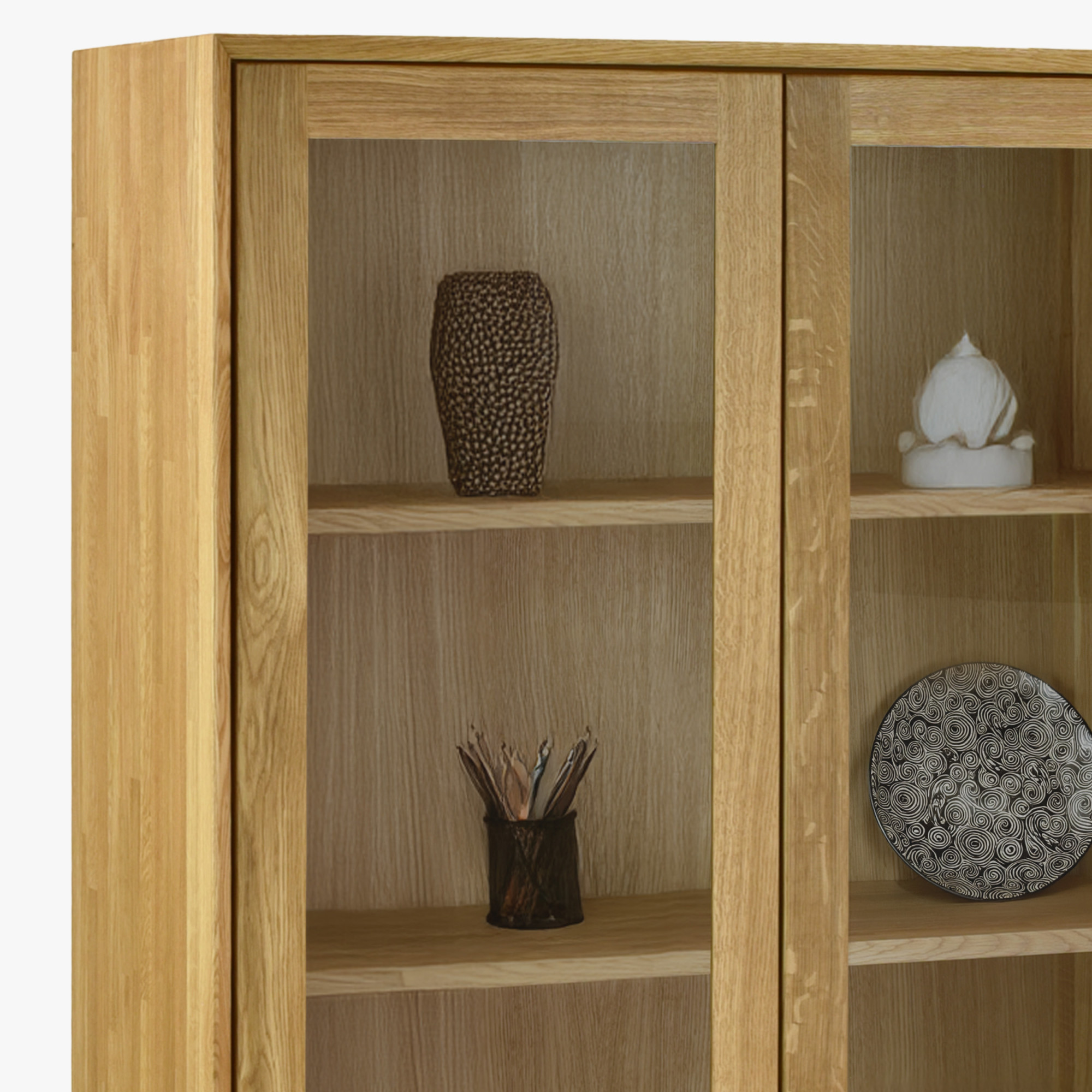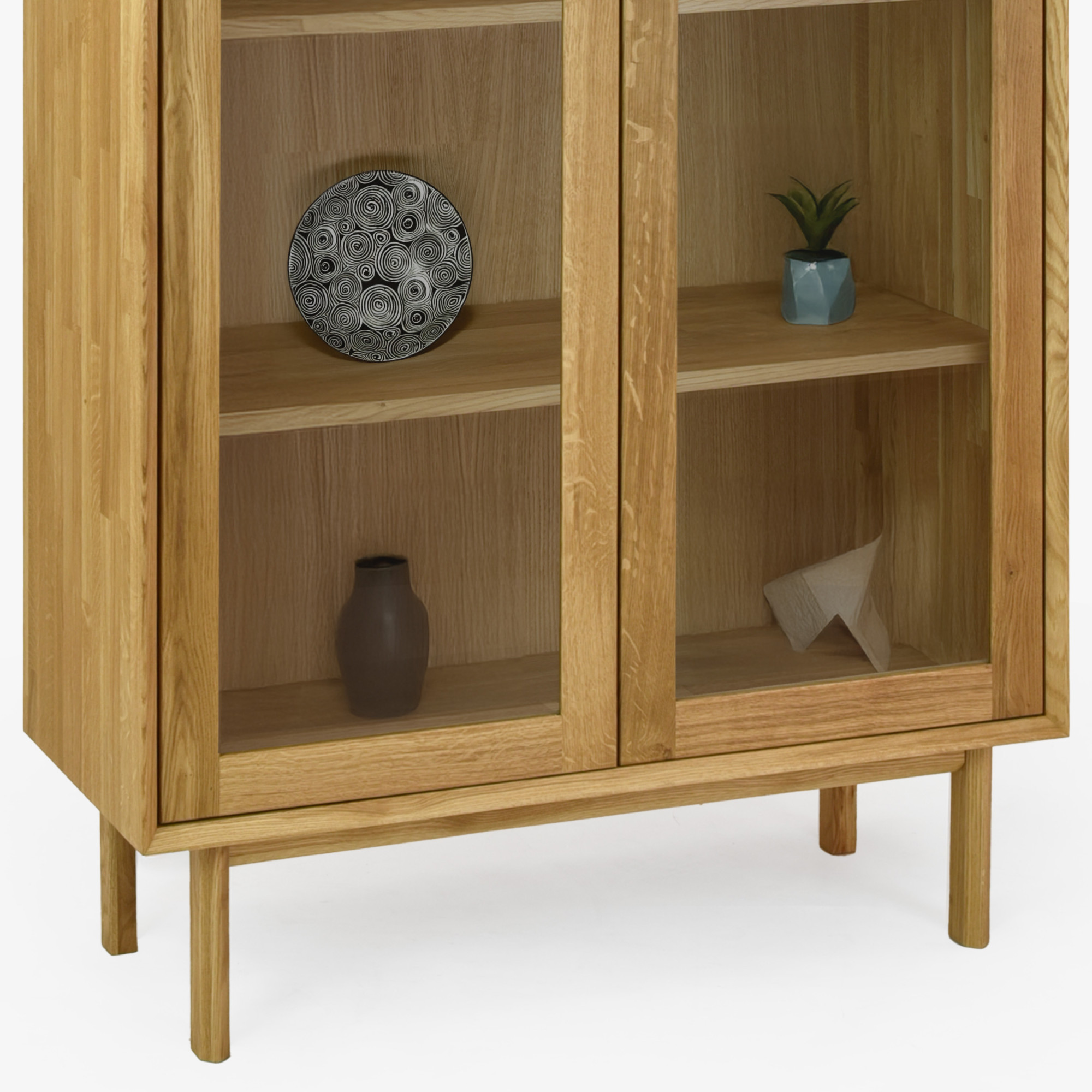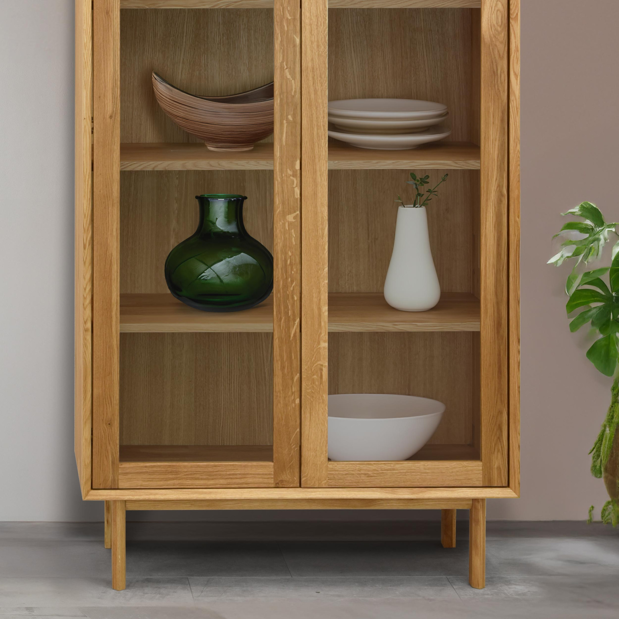 Tömör kétszárnyú vitrin az Oslo II kollekcióból ideális választás azoknak, akik otthonukba a természetes szépséget, a funkcionalitást és az időtlen stílust szeretnék vinni. Tömör tölgyből készült, elegáns skandináv dizájnnal és praktikus elrendezéssel, amely elegendő helyet biztosít a bemutatásra és a tárolásra. Az FSC tanúsítványnak köszönhetően biztos lehet benne, hogy olyan bútort vásárol, amely ökológiailag felelős forrásból származik.