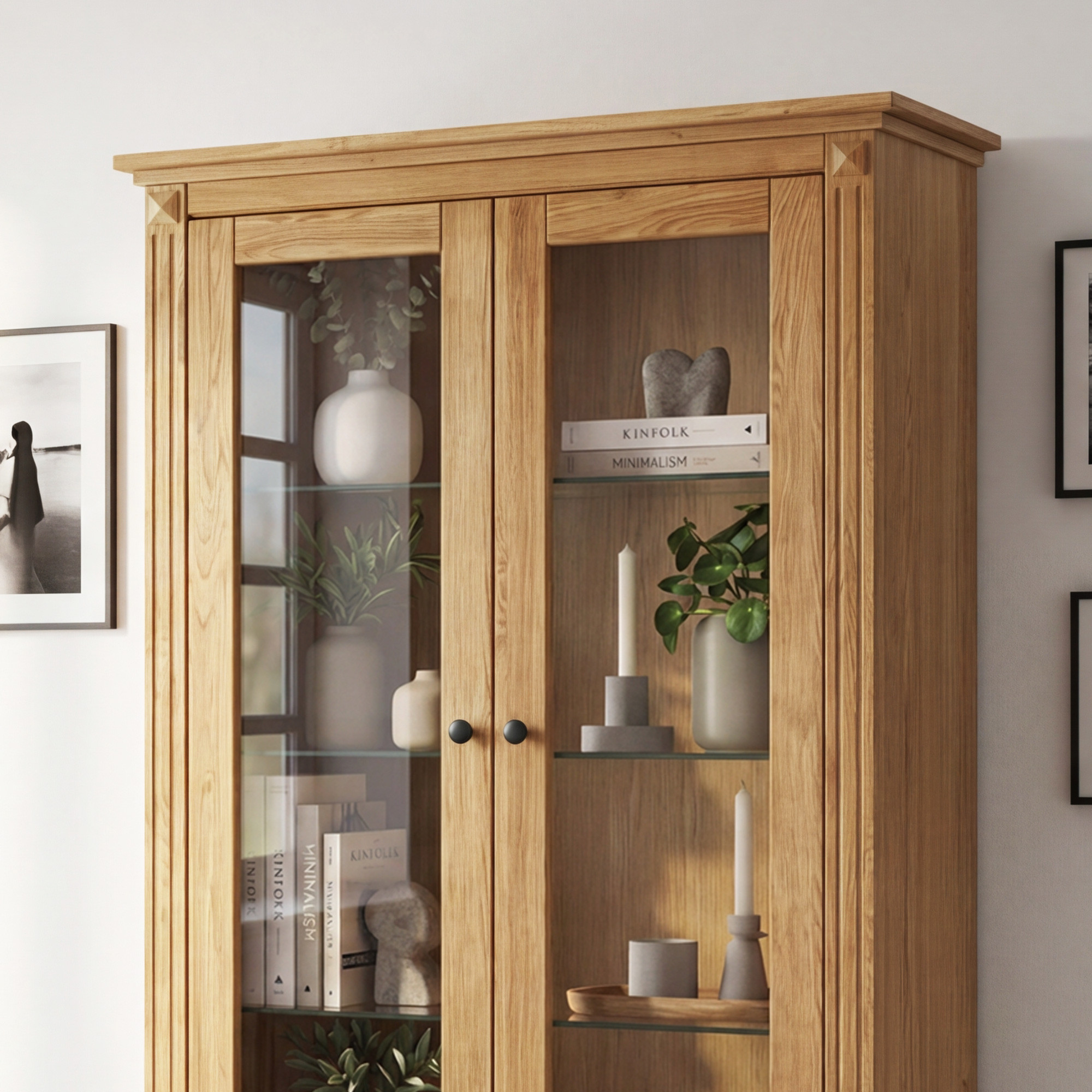 Tömör kőrisfából készült üvegajtós vitrin nagyszerű módja annak, hogy elegánsan bemutassa értékes tárgyait, és egyúttal praktikus tárolóhelyet kapjon a fiókokban. A Gaja kollekció az időtlen skandináv dizájnt ötvözi a kiváló minőségű kidolgozással, amelyet még több generáció is értékelni fog. Cégünk 1993 óta van a piacon, évente több mint 50 000 elégedett ügyfelet szolgál ki az egész EU területén. Saját szállítással rendelkezünk – a bútorokat a saját raktárunkban töltjük fel és közvetlenül otthonában visszatöltjük. Szokásosan szállítunk SK, CZ, HU, AT és PL országokba, felár ellenében emeletre történő szállítást is biztosítunk. Tegye otthonát egy olyan vitrinnel különlegessé, amely elsőre lenyűgöz – rendeljen még ma!