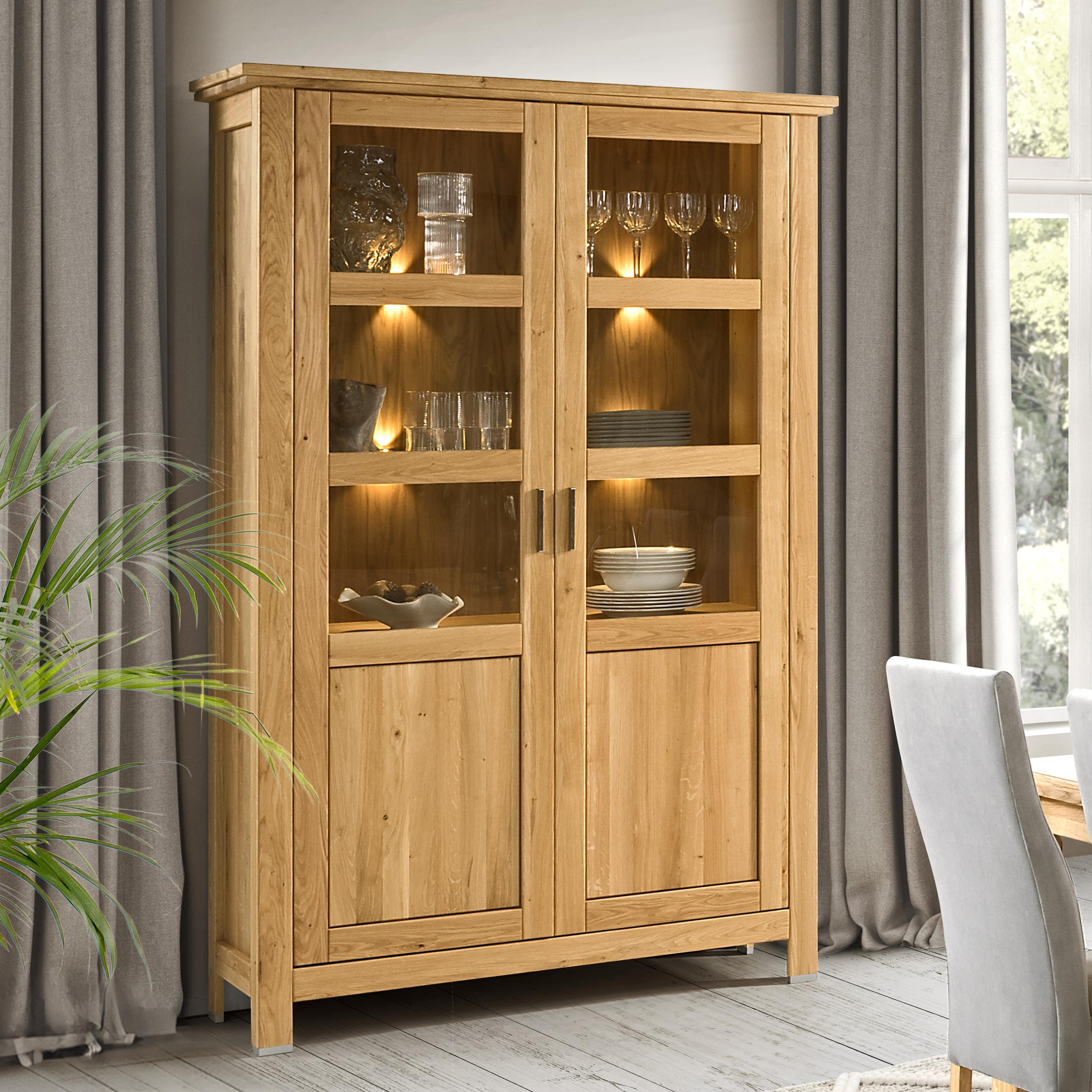 Nagy tömör tölgy vitrin minden enteriőrben luxusos, domináns elemként és bútorékszerként hat. Bőkezűen és praktikusan tagolt belső tereit elsősorban az étkezőben vagy a nappaliban használhatja. A nagymamától örökölt étkészlet számára méltóságteljes helyet kínál a bemutatáshoz!