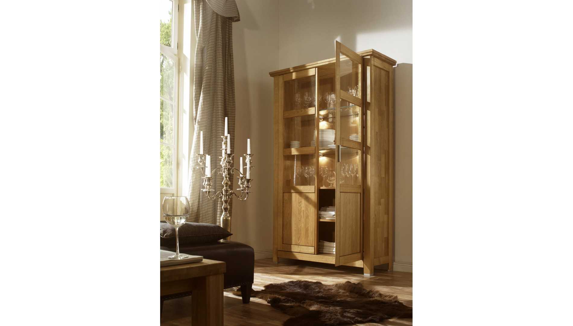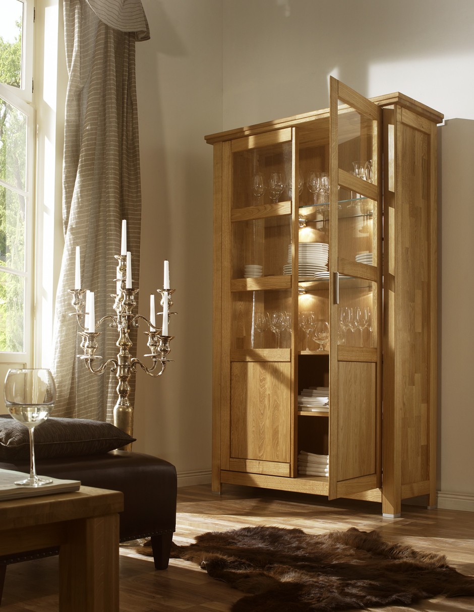 A vitrin az Alexandra bútorkollekció része, melyben neves svájci tervezők vettek részt. Ők a svájci Alpok bútorai ihlették, és terveiknek rusztikus jellegű stílust adtak, miközben alapvető hangsúlyt fektettek az anyagminőségre és a kidolgozásra. A kollekció további elemeinek megvásárlásával egységesen berendezett teret kap, amely a tömörfa szépségét sugározza, és kellemesen átjárja az egész helyiséget a tölgyfa jellegzetes illatával.
