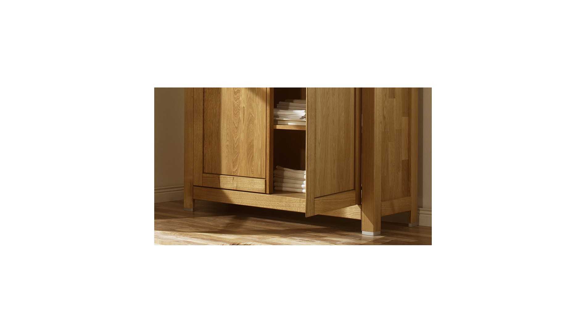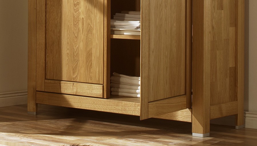 A tölgy vitrin nincs pácolva és nincs fehérítve. A felületkezelés kizárólag speciális olajjal történik, amely szépen kiemeli a fa természetes textúrájának szépségét. Emellett az olajozás megvédi a tömörfát a nem kívánt sérülésektől, karcolásoktól és kopásoktól. A bútor ezért ellenállóbb és hosszabb élettartammal rendelkezik.