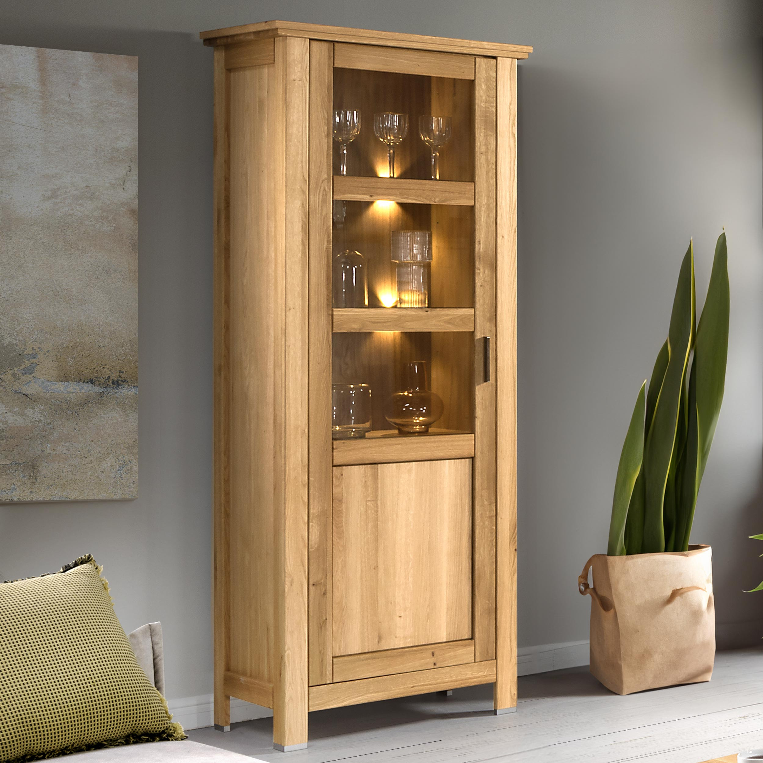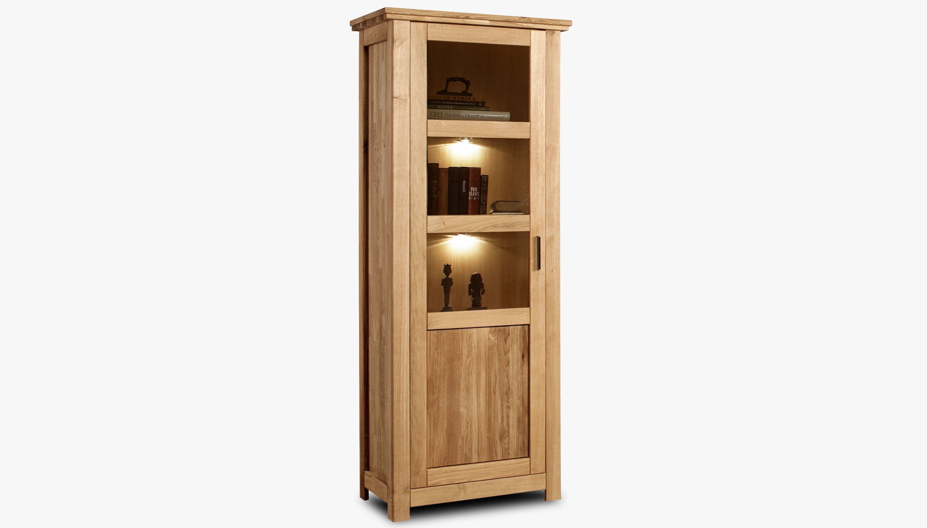 Tömör tölgyfa egyajtós balos vitrin luxus fa tárolóval