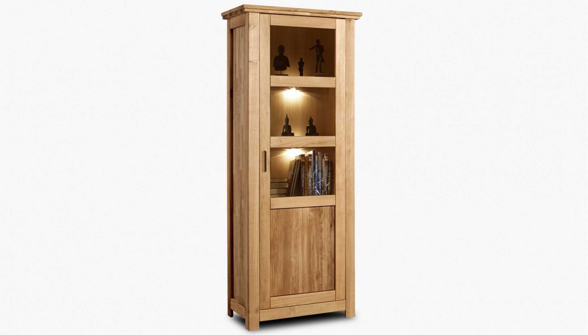 Tömör tölgy egyajtós vitrin - jobb oldali