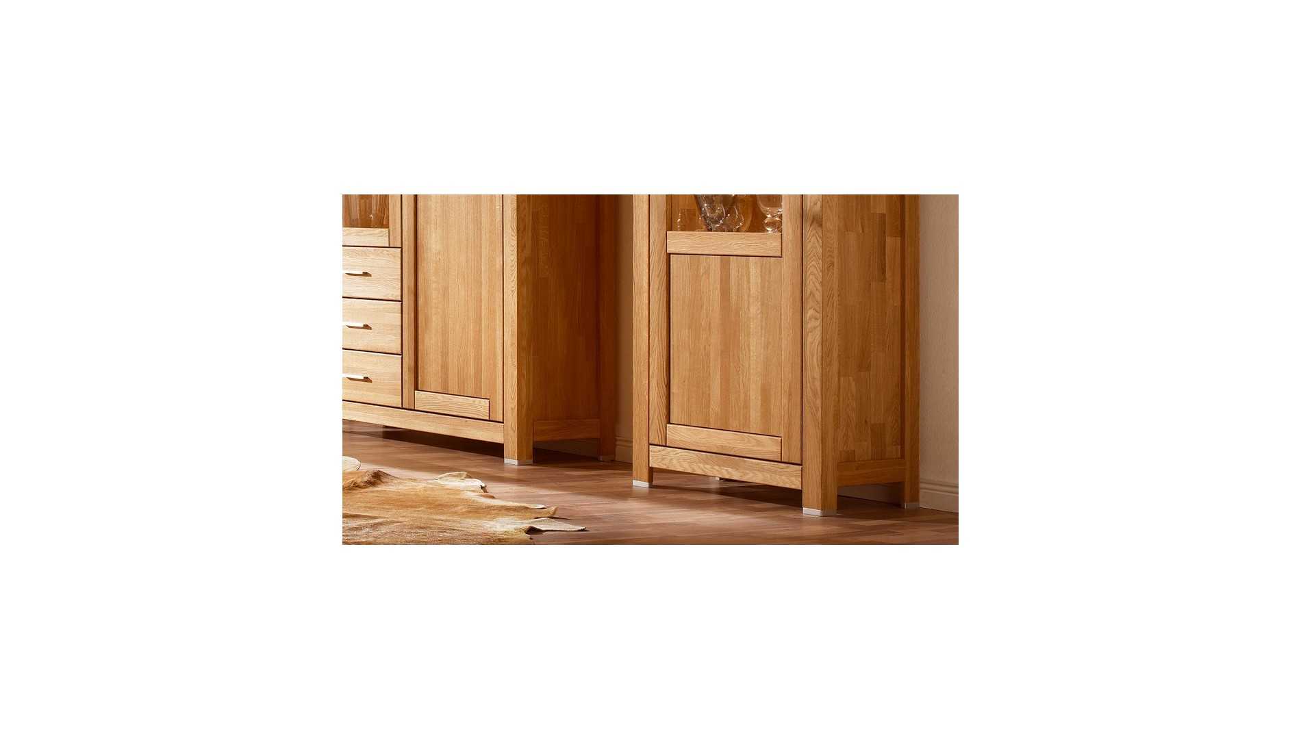 A tölgy vitrin az Alexandra bútorcsalád egyik eleme, amelyet a svájci Alpok inspirált. A vezető svájci formatervezők rusztikus megjelenést modern jegyekkel és elegáns parkettamintával ruházták fel, amely az Alexandra kollekció további darabjain is visszaköszön. A teljesen tömör tölgy szerkezet kiváló szilárdságot biztosít a vitrinnak.