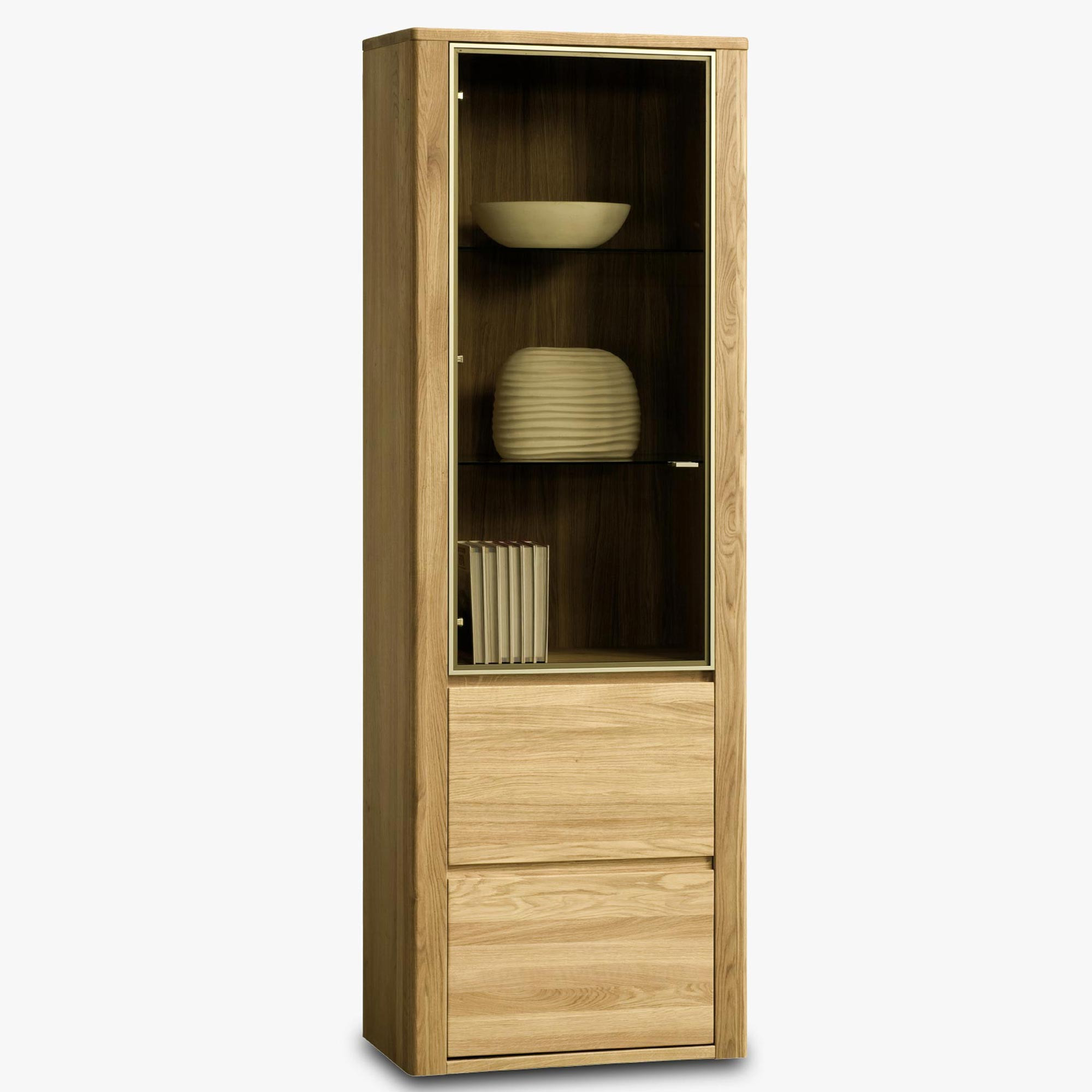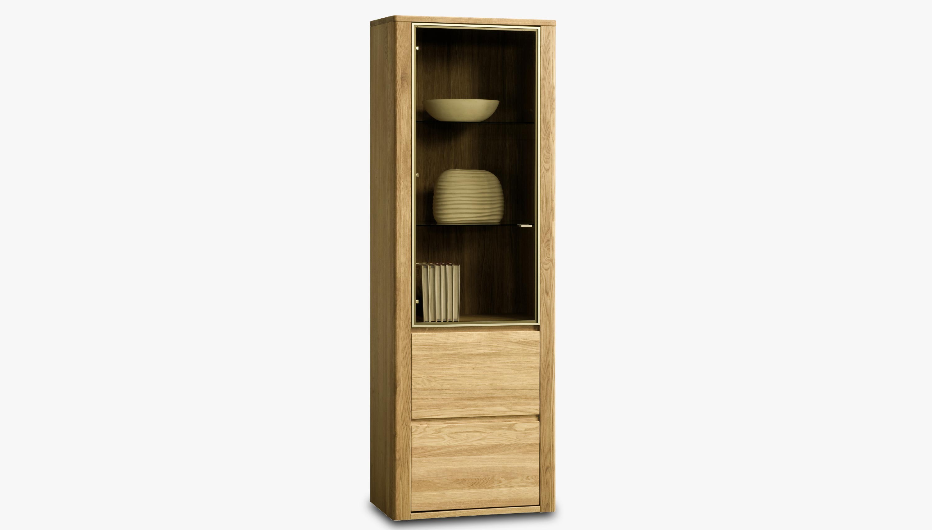 Egyrészes tömör tölgyfa vitrin, minimalista design, természetes fa